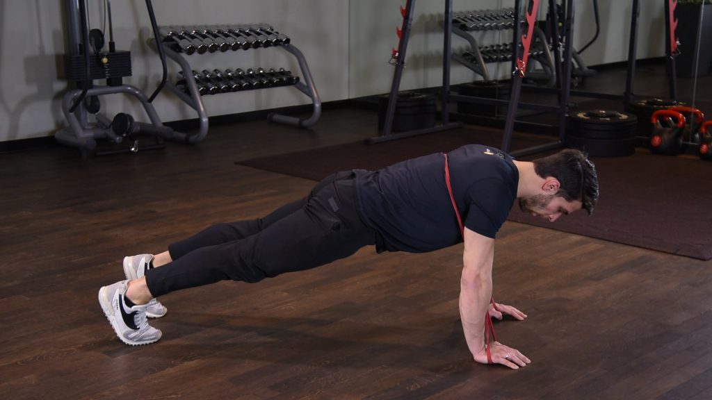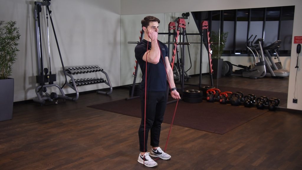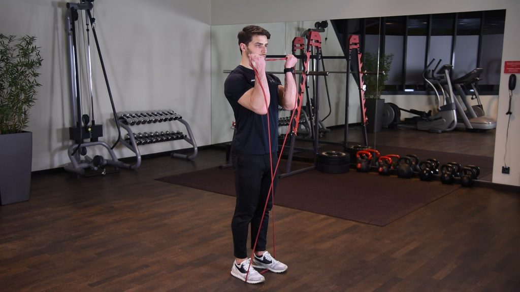 Naprzemienne uginanie ramion z gumą power band w staniu 0 (0)