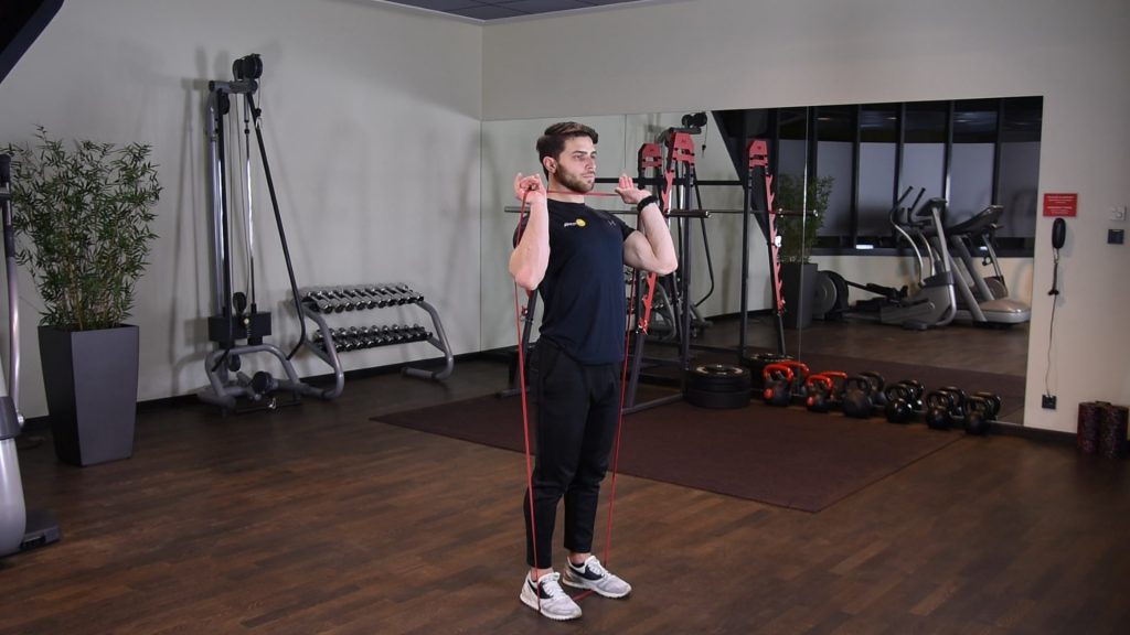 Wyciskanie gumy power band nad głowę w staniu 0 (0)