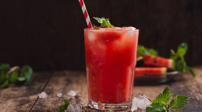 Pokrój arbuz na drobne kawałki i dodaj go do wody, a uzyskasz przyjemny i orzeźwiający napój. Wzbogać go bazylią dla lepszego aromatu.